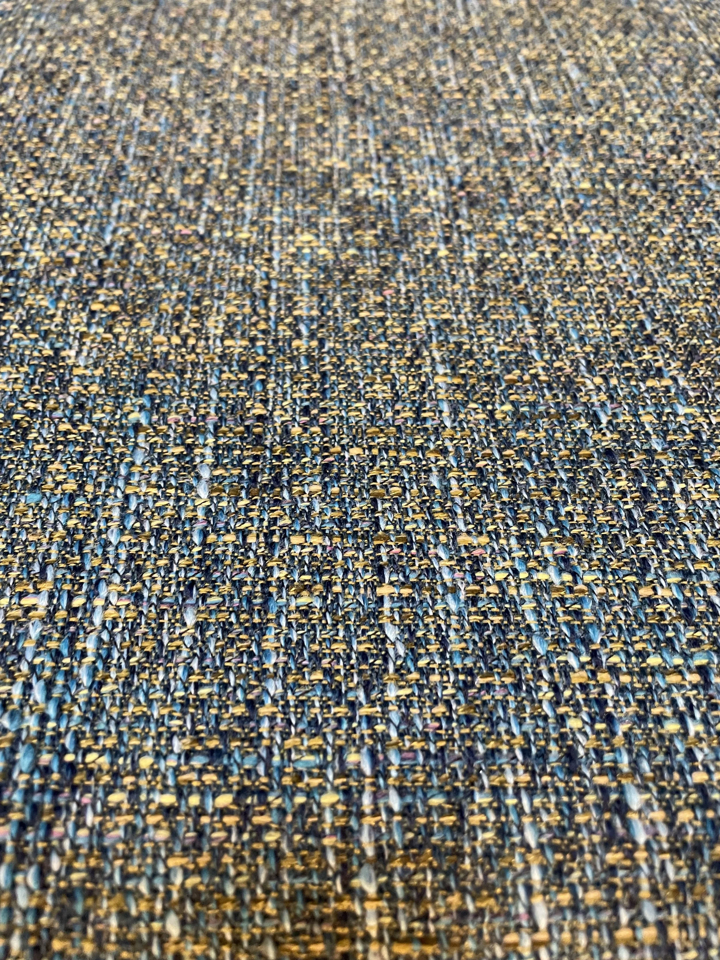 These two comfortable easy chairs, recently imported from Europe to California before their restoration, features a vibrant wood grain and a set of new pillows with brand new period correct textured upholstery.