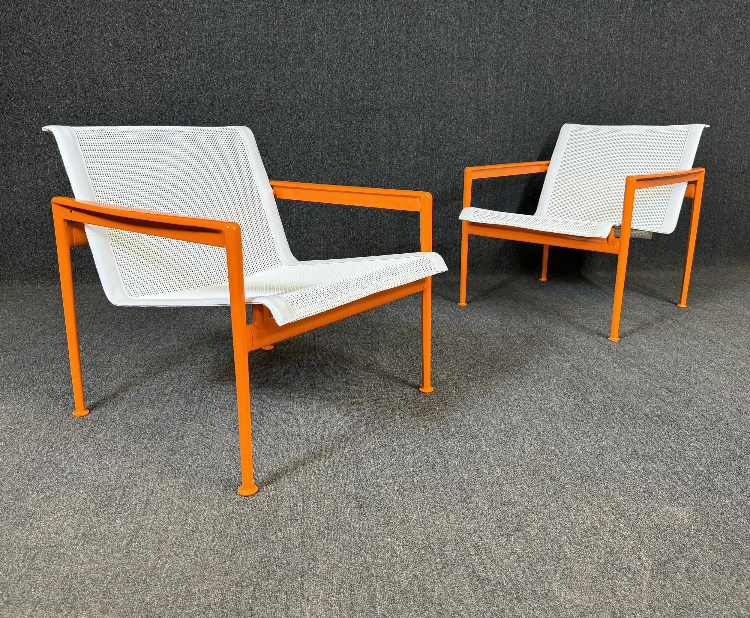 Here is a beautiful set of two vintage MCM outdoor lounge chairs part of the sought after "1966 Leisure Collection" designed by Richard Schultz and manufactured by Knoll in the USA in the 1970's.