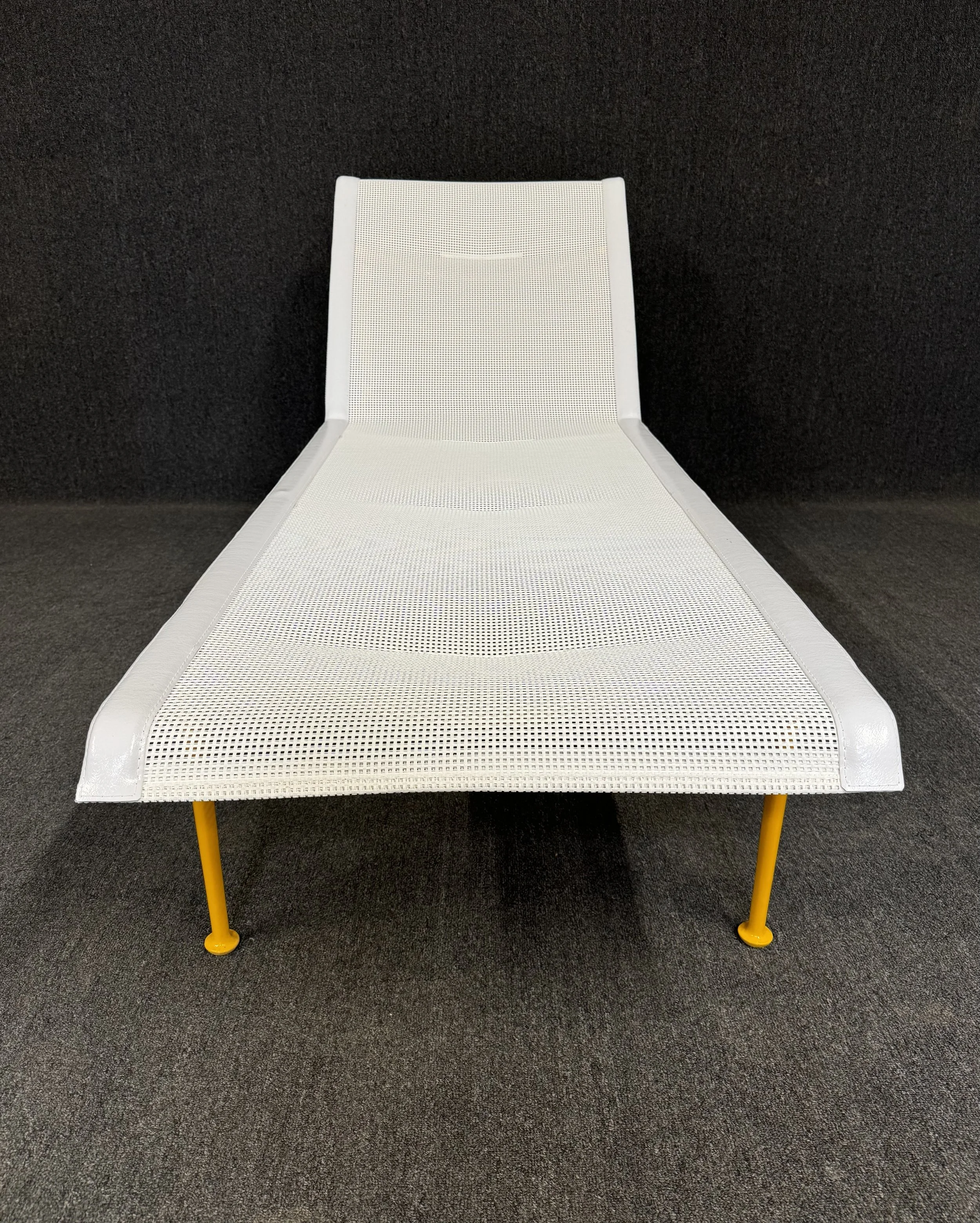 Here is a beautiful set of two vintage MCM outdoor lounge chaises part of the sought after "1966 Leisure Collection" designed by Richard Schultz and manufactured by Knoll in the USA in the 1960's.